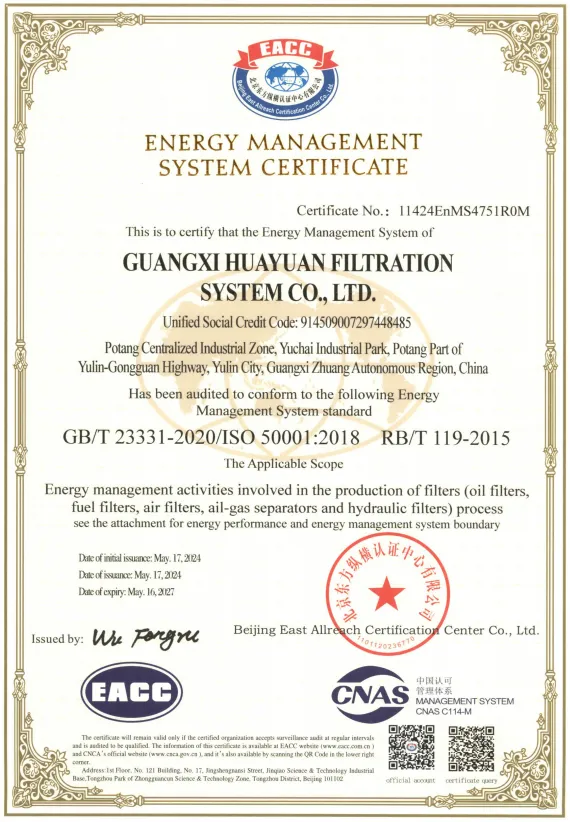 2024年5月13日到16日,评审专家依据GB/T23331-2020/ISO50001:2018标准及RB/T119-2015《能源管理体系 机械制造企业认证要求》,对公司的生产过程所涉及的能源管理活动及节能技术应用进行实地调研和审核,通过多环节地严格评审,审核专家一致认定华原股份的能源管理体系满足审核准则的要求。